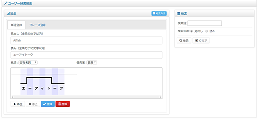 The user dictionary function registers and saves names of people and places that are read in special ways. You can register not only how to read but also the intonation of the word.